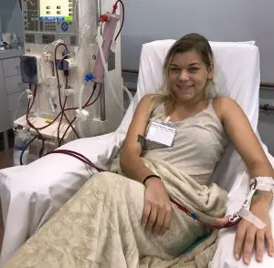 Taynara durante a sessão de hemodiálise na Pró-Rim.