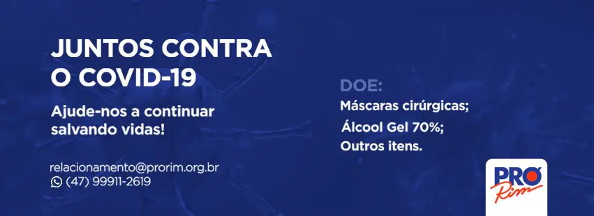 A Pró-Rim, assim como outras instituições de saúde, se deparou com a falta de insumos e equipamentos de proteção individual para aquisição nos fornecedores, além do aumento nos valores dos materiais com alta demanda no mercado. Para manter o atendimento de forma segura aos pacientes e funcionários, seguindo as determinações do Ministério da Saúde, a instituição iniciou uma campanha de doação de equipamentos e insumos.