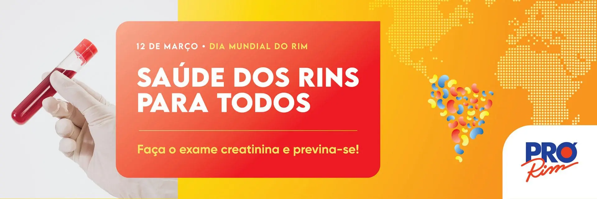 O Dia Mundial do Rim, que será comemorado no dia 12 de março deste ano, traz o tema "Saúde dos Rins para Todos" e o slogan “Ame seus rins. Dose sua creatinina!”. O objetivo da campanha é promover a prevenção das doenças renais através de exames de rotina que identificam o diagnóstico precoce da doença, que vem sendo a causa de pelo menos 2,4 milhões de mortes por ano, segundo a Sociedade Brasileira de Nefrologia.