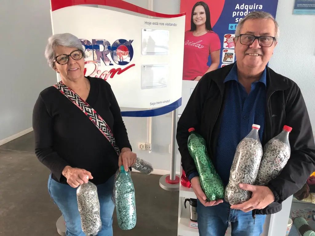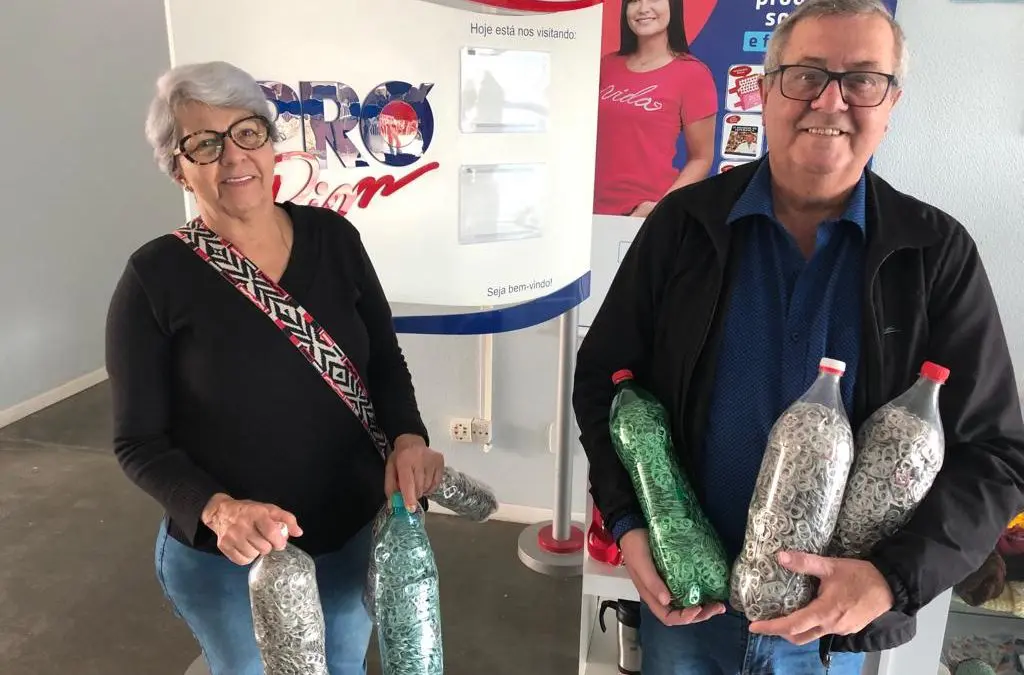 Elodir José Camello mora em Itapema (SC). Ele tem 65 anos, é contador aposentado e foi transplantado pela Fundação Pró-Rim há três anos e meio. Para transformar essa gratidão em generosidade, a cada três meses, sempre que vem consultar no pós-transplante, em Joinville (SC), ele e a esposa Darci trazem várias garrafas pet cheias de lacres de latinhas.
