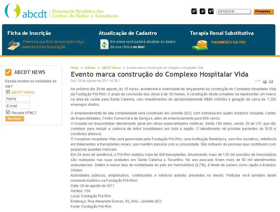 • ABCDT – Evento marca construção do Complexo Hospitalar Vida
