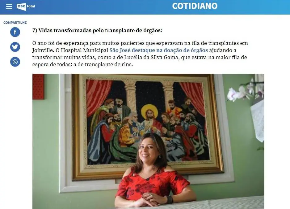 O ano foi de esperança para muitos pacientes que esperavam na fila de transplantes em Joinville. O Hospital Municipal São José destaque na doação de órgãos ajudando a transformar muitas vidas, como a de Lucélia da Silva Gama, que estava na maior fila de espera de todas: a de transplante de rins.
