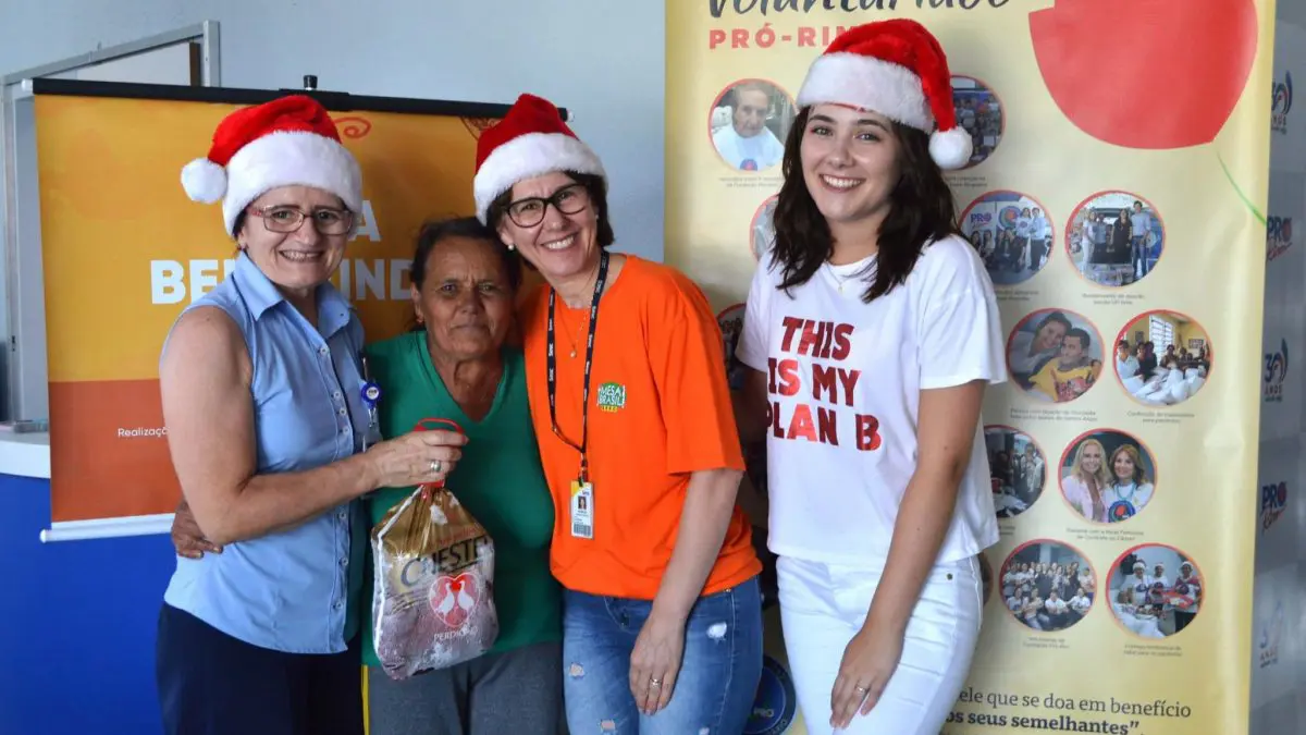 Nesta semana, o Voluntariado da Pró-Rim presenteou as famílias dos pacientes renais com a entrega de um chester para a ceia natalina. As famílias que receberam a ave já estão inscritas no programa de cestas básicas da instituição, as quais se encontram em situação de vulnerabilidade social e muitas não possuem condições financeiras para comemorar o Natal com um jantar especial.