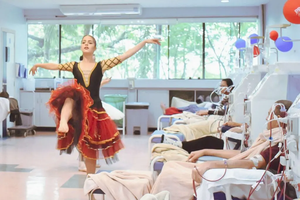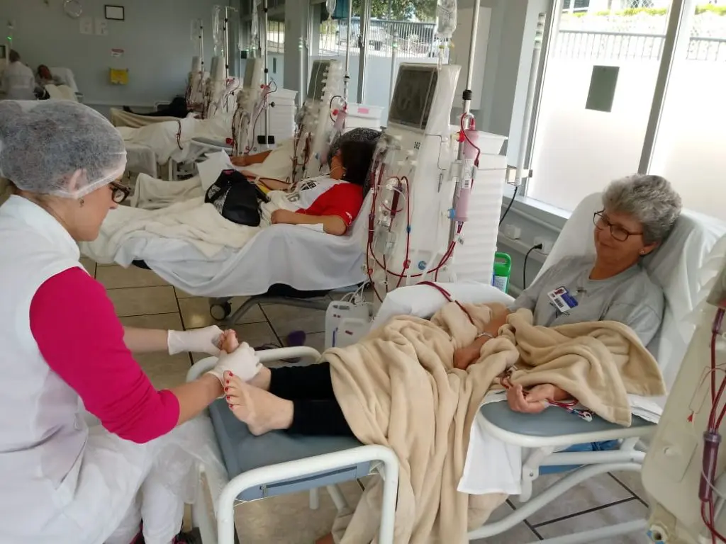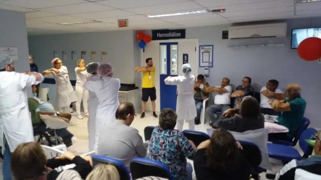 A paciente Ivana Cristina Torres Barrozzo, que faz hemodiálise há 5 anos na clínica Vida Center em Joinville (SC), se encantou com a apresentação de dança realizada pelas alunss da E.M. Max Colin. “O tratamento tem dias difíceis e muitas vezes nos cansamos dessa rotina. Essas apresentações de dança e de música nos trazem vida. O carinho que os voluntários nos trazem, o cuidado deles conosco, só temos a agradecê-los por esse gesto de amor”, conta a paciente.