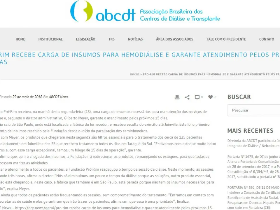 Na manhã desta segunda-feira (28/05), a Fundação Pró-Rim recebeu uma carga de insumos para o tratamento de hemodiálise dos pacientes renais da instituição. A operação trouxe alívio aos pacientes renais e de seus familiares. Este foi o primeiro carregamento a ser entregue desde o início da greve dos caminhoneiros. O […]
