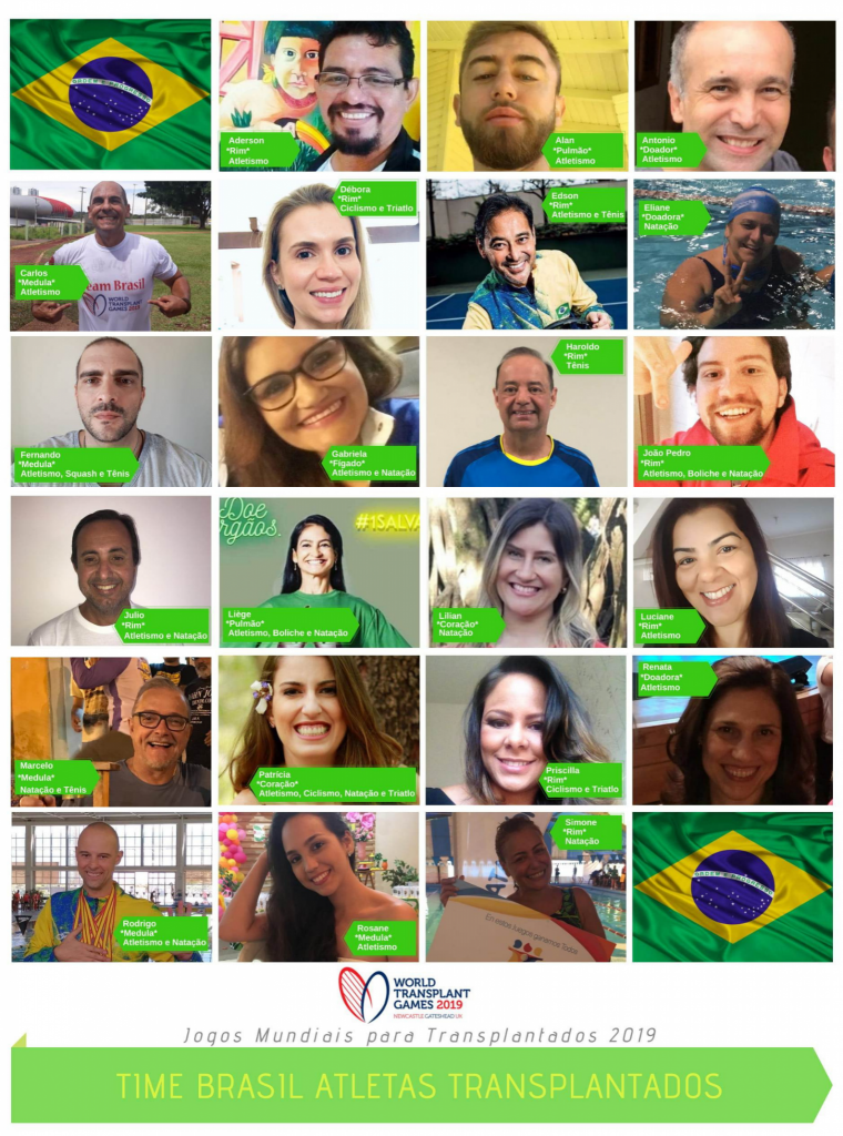 Participam da equipe brasileira 22 atletas, sendo 19 transplantados e 3 doadores (2 doadores de medula óssea e 1 doador de rim). Uma marca inédita de participantes, superando os seis atletas que estiveram na competição em 2017, na Espanha.