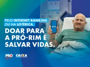 A Fundação Pró-Rim está com uma nova opção de doação, uma oportunidade de ajudar a salvar vidas dos pacientes renais. Com a nova parceria entre a Caixa Econômica Federal (CEF) e a Pró-Rim é possível doar valores a partir de R$5,00 diretamente nas casas lotéricas ou pelo Internet Banking do banco.