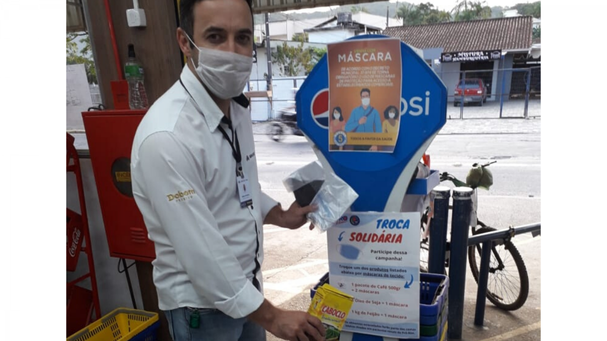 Ação “Troca Solidária” vai arrecadar alimentos por máscaras de tecidos em supermercado de Joinville (SC). Benefício será direcionado aos pacientes e familiares em vulnerabilidade social com cestas básicas.